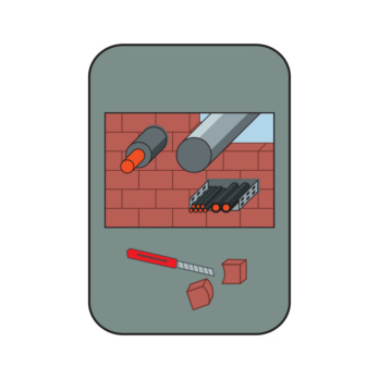 - For wall and ceiling ducts for electrical lines and for copper pipes up to 28 mm in diameter or steel pipes up to 54 mm in diameter (pipes with blocks only)